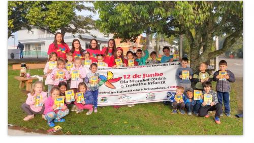 Secretaria de Assistência Social, Cras, Asema e Conselho Tutelar realizam durante o dia, um trabalho de conscientização sobre o trabalho infantil. A campanha acontece na praça Dr Anuar Elias Aesse, envolve a participação de crianças, professores, funcionários da prefeitura e distribuição de adesivos sobre a data de 12 de Junho, considerada Dia Mundial de Combate ao Trabalho Infantil