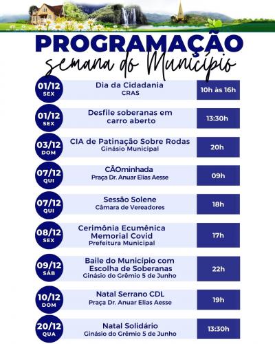 Notícia » Programação da semana do Município