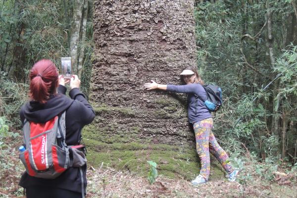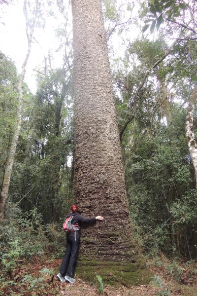 Araucária com idade aproximada entre 300 e 500 anos. Seu tronco possui circunferência de 4,90m (medido 1m acima da base, sendo que a base tem 6,05m de circunferência) e altura superior a 20m.